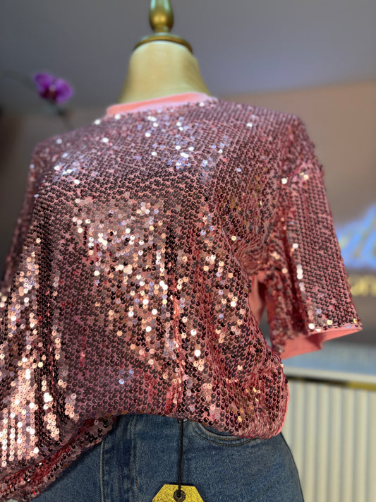 BLUSA OVER SIZE LENTEJUELA ROSA