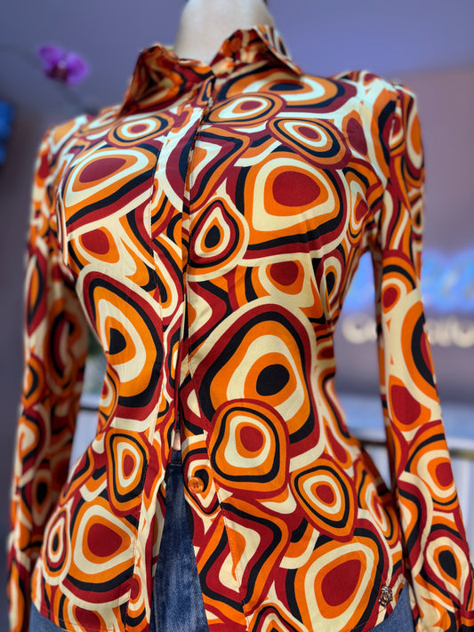 CAMISA NARANJA ESTAMPADA CIRCULOS