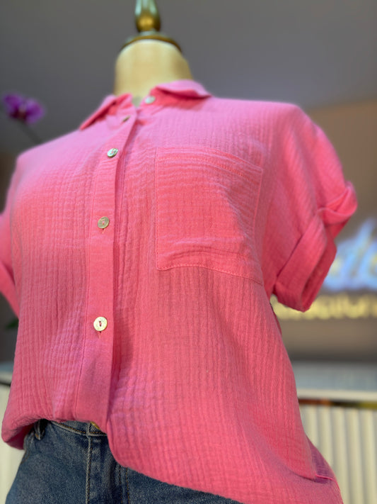 CAMISA LINO OVER SIZE ROSA FIUSHA