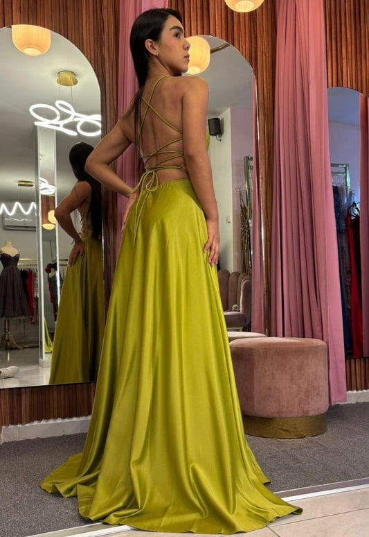 VESTIDO ESC. ESPALDA SATIN RECTO TIRAS