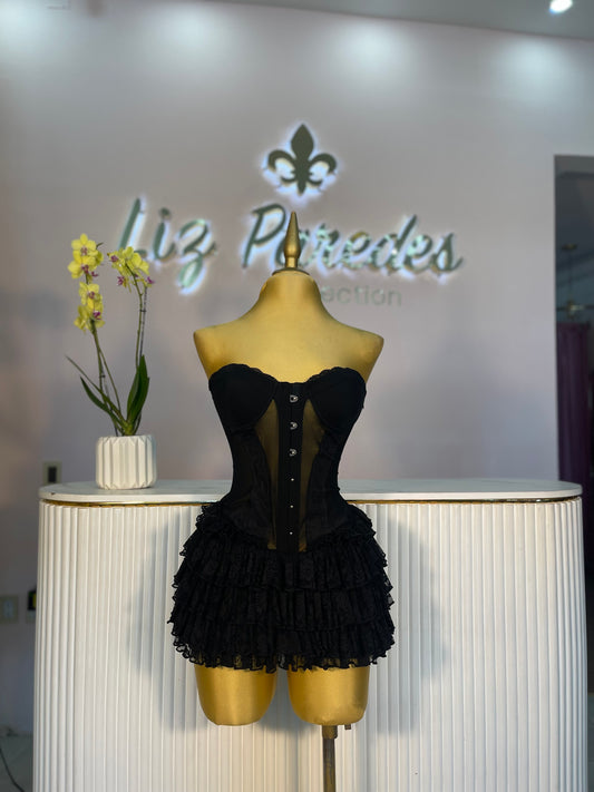 ROMPER CORSET/VOLANTES NEGRO ENCAJE