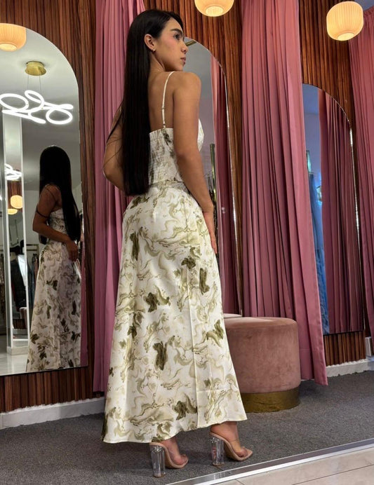 SET FALDA/TOP SATIN FLORES