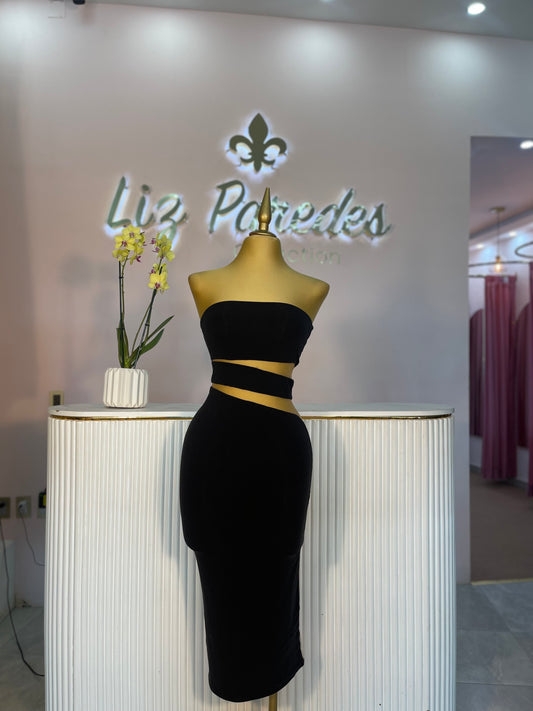VESTIDO MIDI HALTER NEGRO ESTOPEROLES