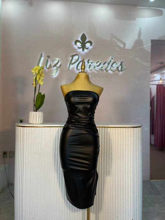 VESTIDO STRAPLESS MIDI VINIPIEL