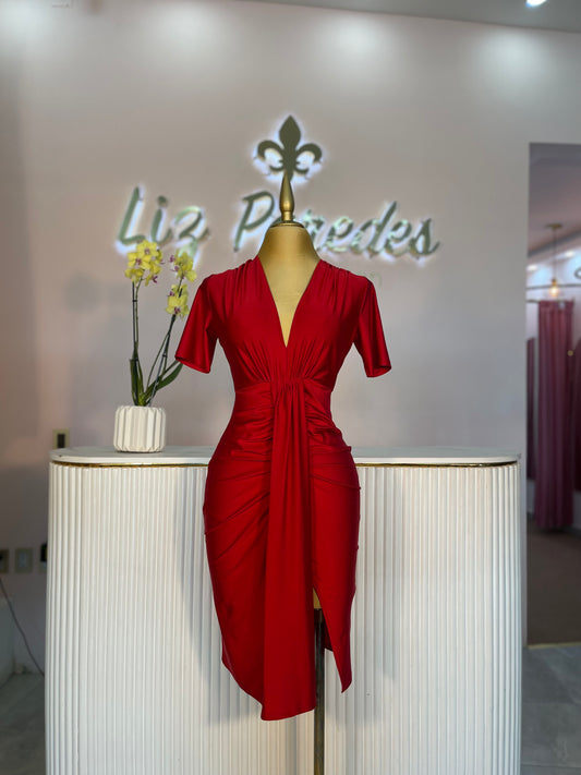VESTIDO ROJO MANGA CORTA CUELLO V