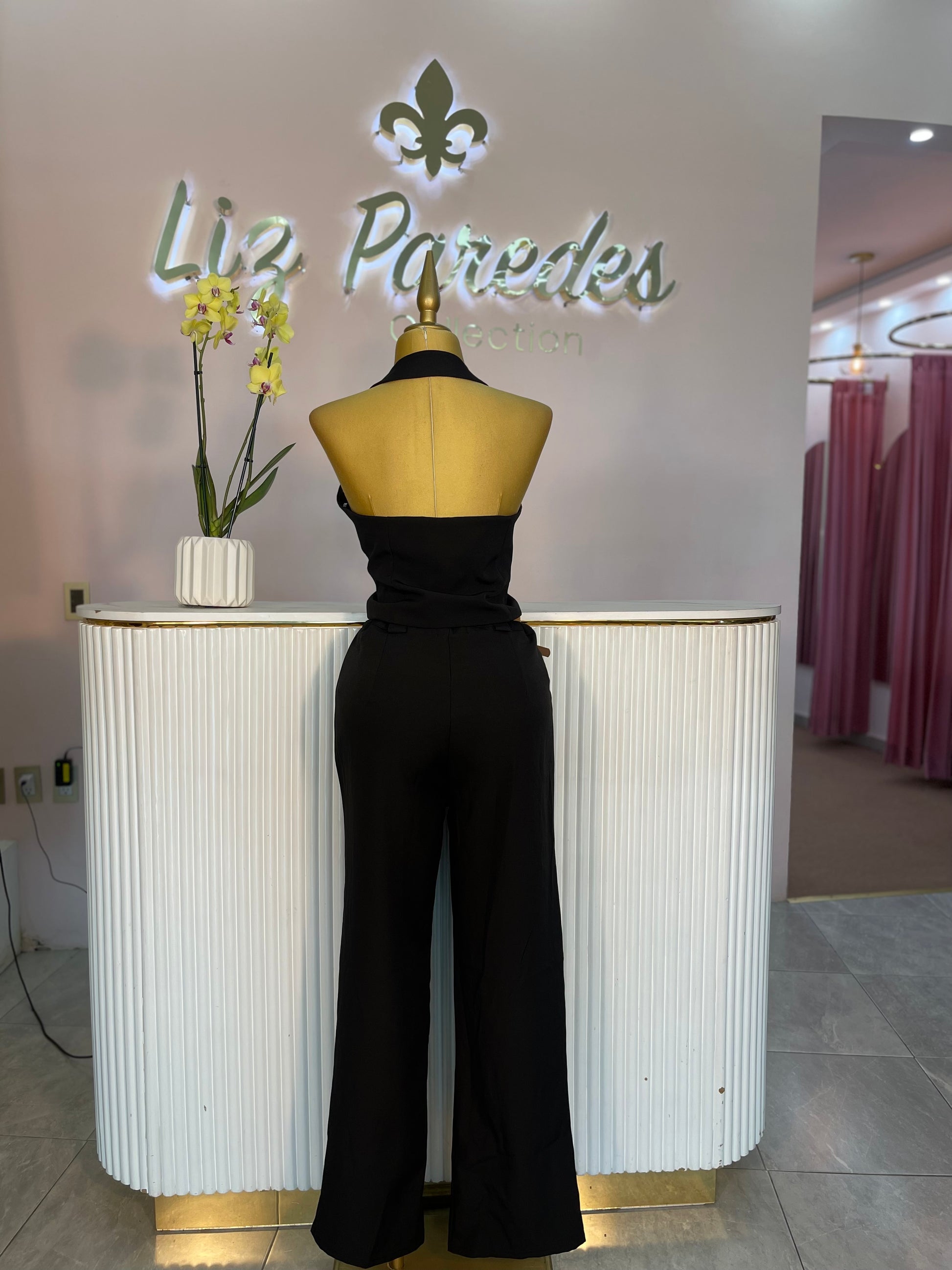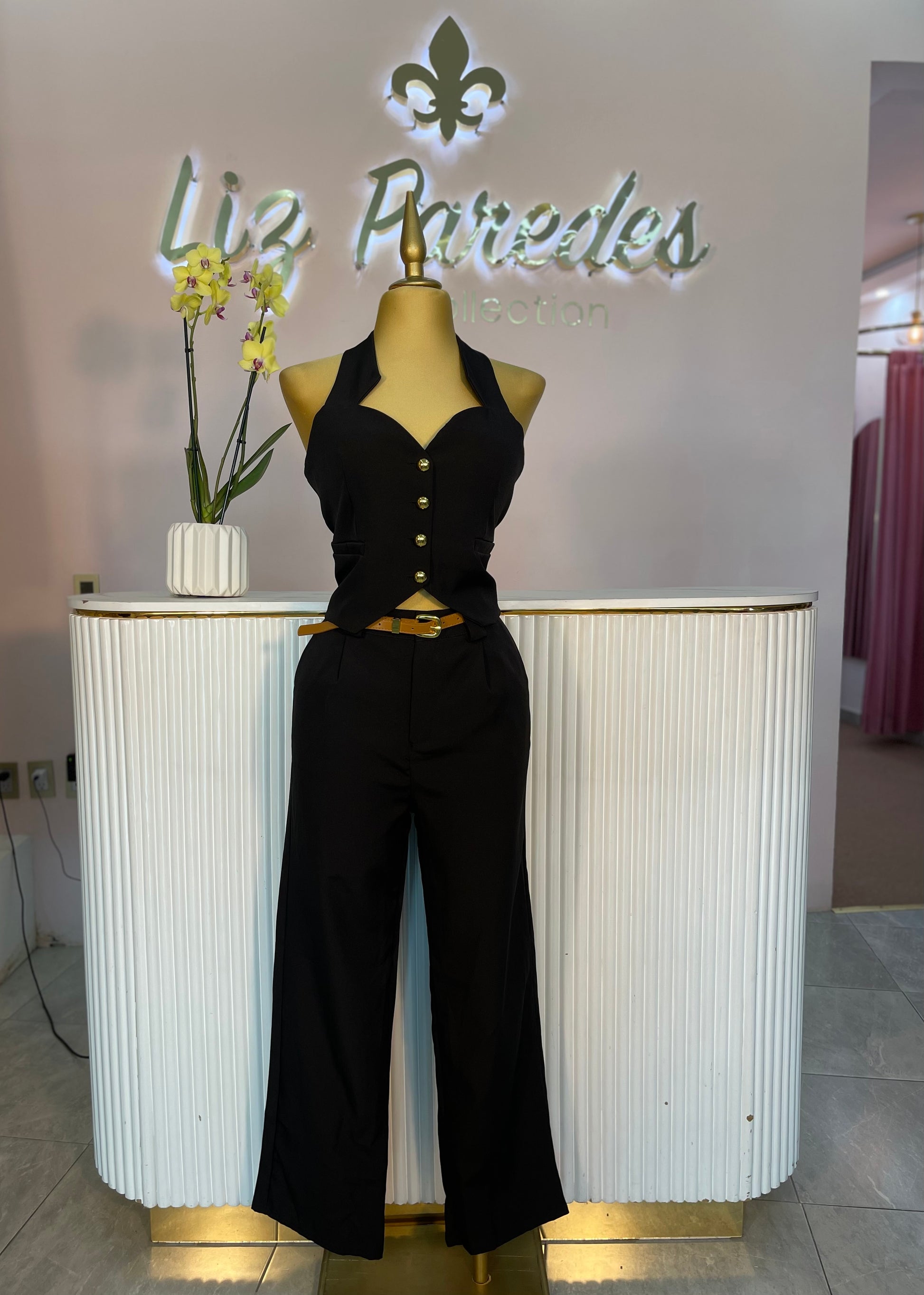 SET NEGRO CHALECO BOTONES DORADOS