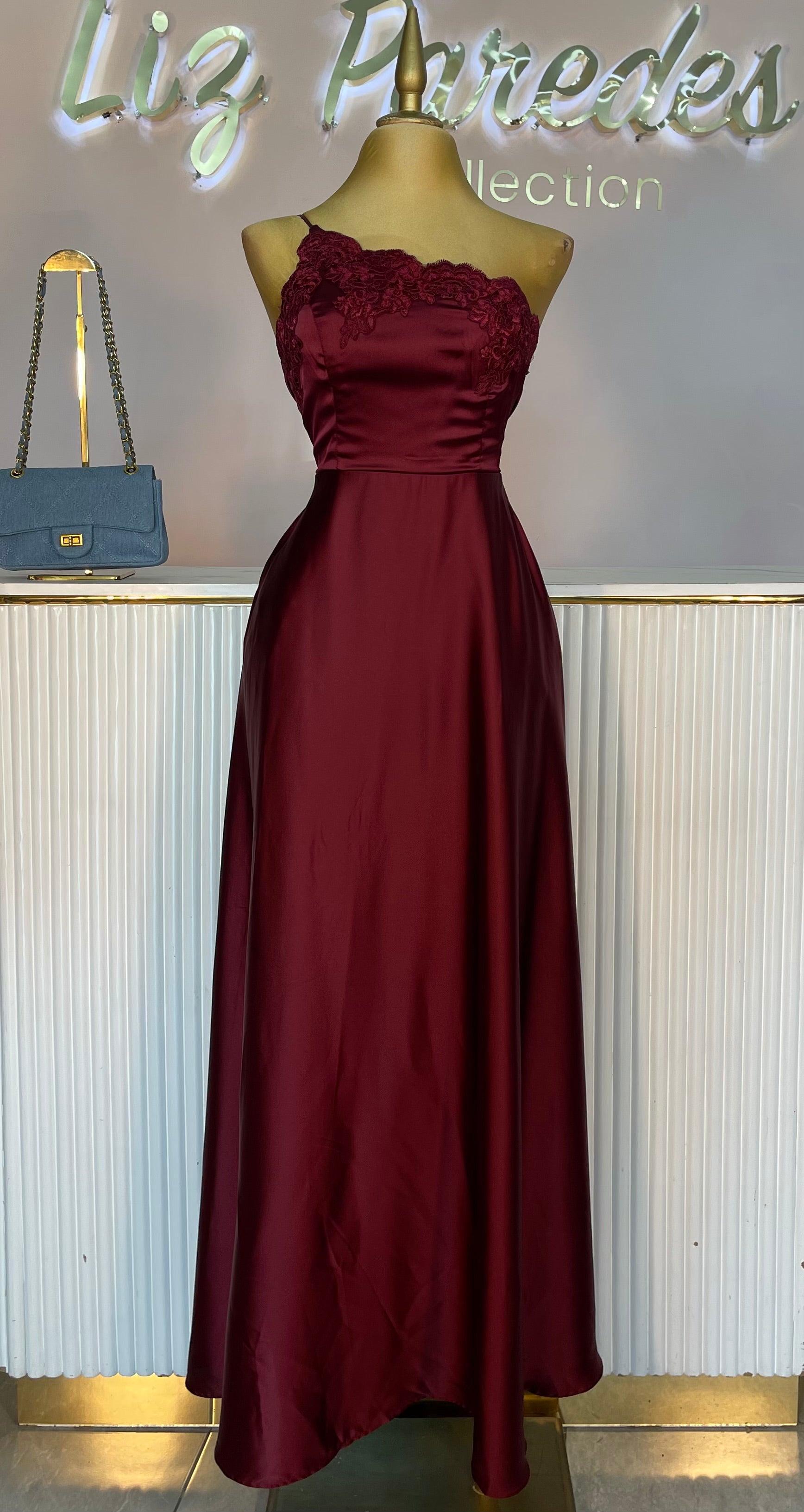 VESTIDO MAXI SATIN ASIMÉTRICO ENCAJE