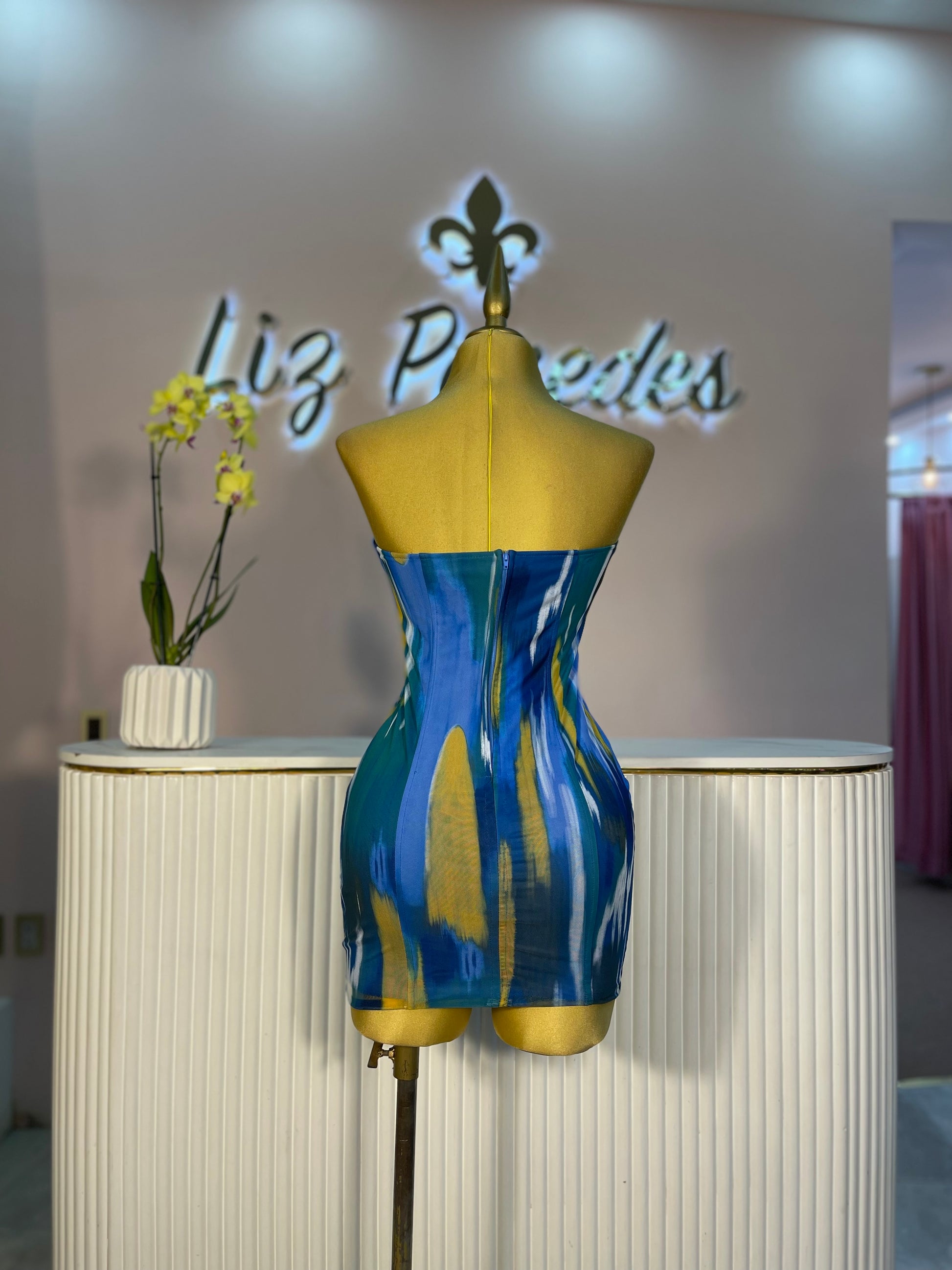 VESTIDO-MINI MESH AZUL/AMARILLO